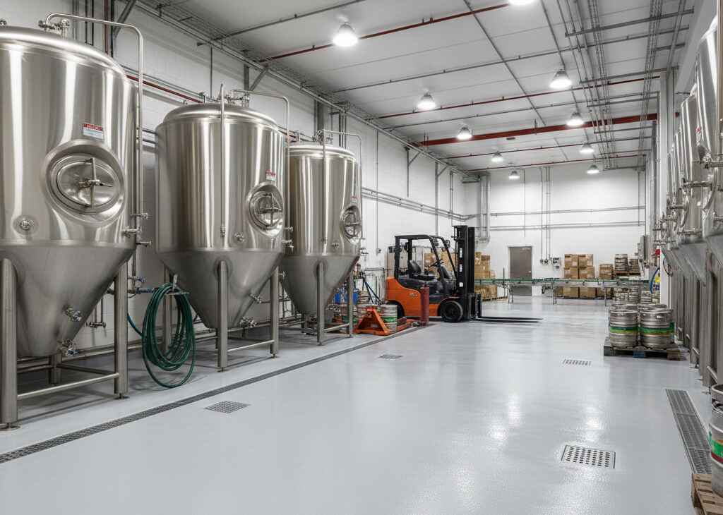 The production environments in breweries, distilleries, and other beverage manufacturing facilities are particularly harsh. Flooring is constantly exposed to liquids, foot traffic, machine traffic, temperatures ranging from above 100°C to near freezing, and the weight of vats, conveyor belts, and other heavy machinery.